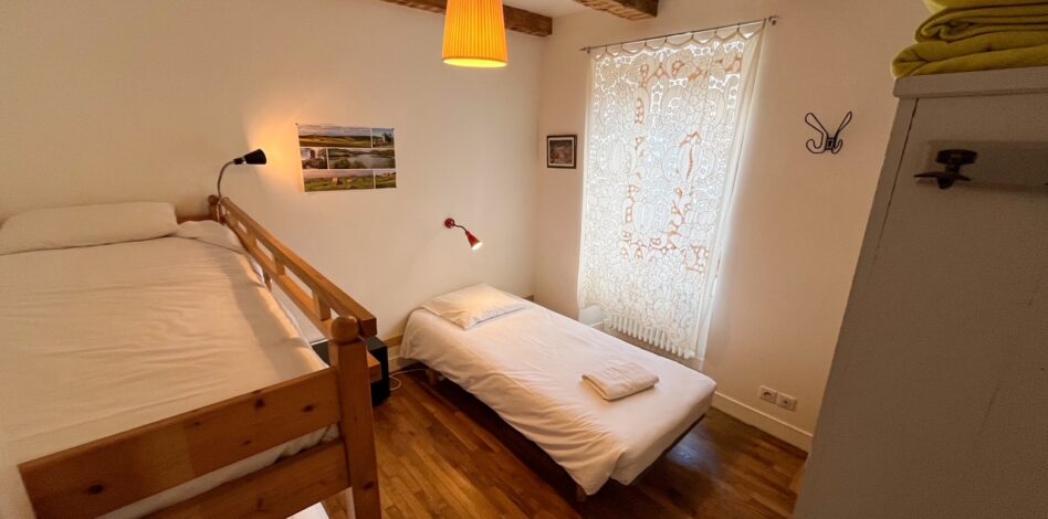 3 lits (90) 1 lit superposé 3 personnes Salle d’eau ( lavabo / douche ) + WC séparés communs avec la chambre 3 1er étage, côté cour