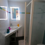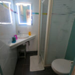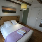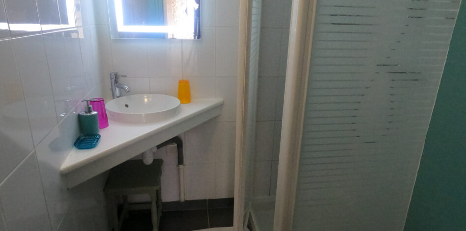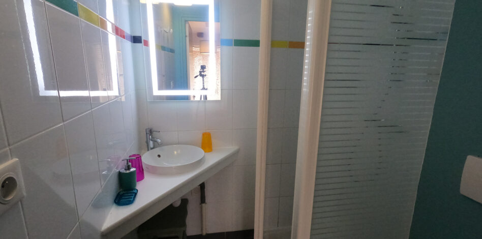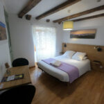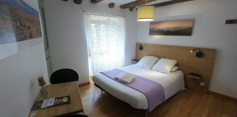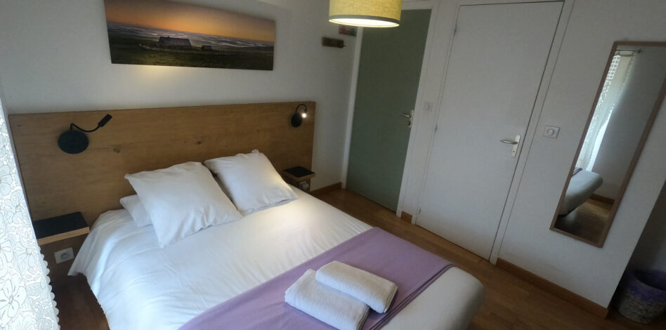 1 grand lit (140) 2 personnes Salle d’eau ( lavabo / douche / WC ) 2ème étage, côté rue